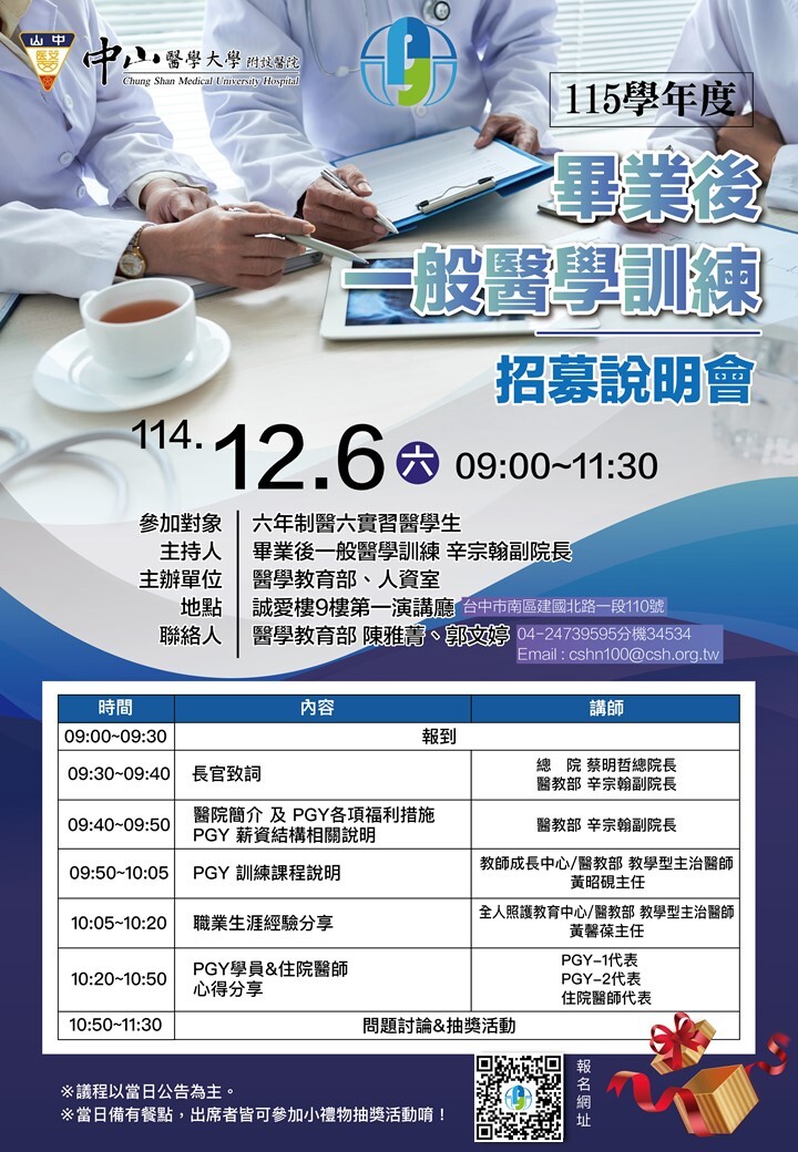 中山醫學大學附設醫院「115學年度PGY招募說明會」
