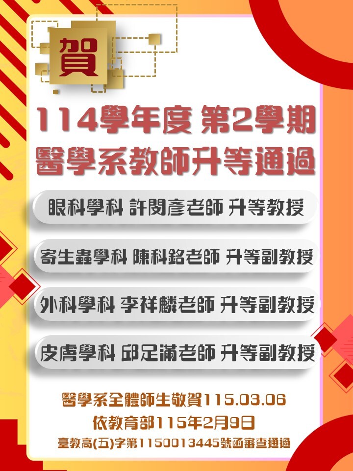 .賀.醫學系114學年度第2學期教師升等審查通過!